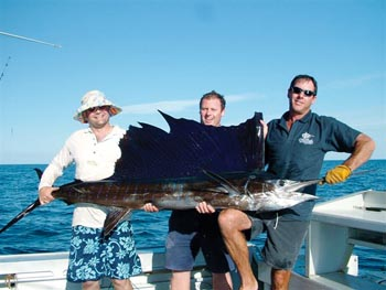 How would you feel leaving the mooring mid morning? Steam 40-60 nm off Broome, trolling high speed lures all the way. Set up for an evening chasing big red emperor, large fingermark and other reef fish while the crew prepare you a home-style meal. Have a nice hot shower and sleep in a comfortable bed, before waking to the hum of the engines as the crew prepare the teasers, lures and bait in search of black marlin that we know inhabit these waters. As we work closer to Broome you will find us downsizing the gear and targeting sailfish, before arriving back on the mooring at around 4pm.