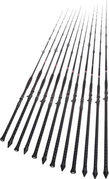 TIRALEJO - PERFORMANCE MEETS DIVERSITY ‘Tiralejo’ in spanish means to ‘throw far’. In anyone’s language, whether you fish from the rocks, beaches, or even big ocean jetties, you’re going to find these rods absolutely fantastic. Tiralejos are something quite unique and will alter forever the way people look at performance casting sticks. With a World Casting Championships pedigree behind them, it’s no wonder.Designed by the Australian rod builder, Ian Miller, the most noticeable feature of the Tiralejo series are the Slide ’N Grip reel seats. This means they can be moved anywhere the angler wants on the butt end of the rod. Additionally, there’s an adjustable internal counterbalance accessed via the butt cap and the grips are a new slim line look that cut down on weight, yet are comfortable to hold onto for long periods. A supplied screw-in sand spike can also be attached to the butt. The blanks are made from Shimano’s exclusive XT300 low resin, high modulus graphite. Tiralejo rods in spin or overhead are available in sizes from nine to thirteen feet, two or three piece depending on the length, and have ‘graphite to graphite’ ferrules. The ferruling is so beautifully done that it’s hard to believe they’re not one piece rods. The twelve rods in the range cover fishing styles as diverse as flinging Raiders on ten kilo line into washes, looking for Greenback Tailor and Australian Salmon, to live-baiting with whole choppers for Jewfish and Spaniards. As an added bonus, each rod comes with its own rod tube!