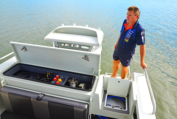 As I explained, the Lodge operates several Ocean Masters: two 451 Riptides; three 511 Storms; and a 651 Twister. The Twister is the next size down from the Vortex and the only hull difference is in the length. In other words, the larger Vortex has the same beam, same depth and same thickness in the various aluminium hull components; it’s just 900mm longer.