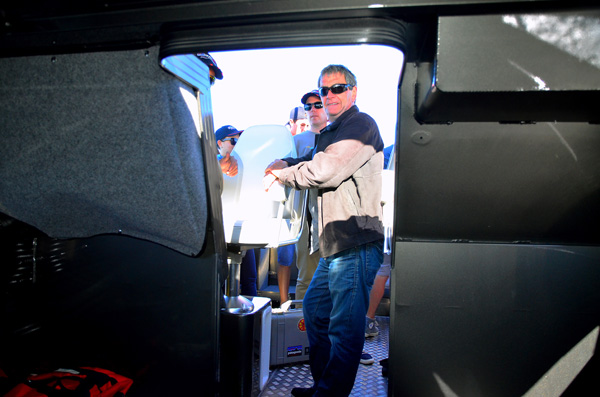It was interesting to learn that the boats are rated according to a flip test on full-lock turns. Professional drivers (two up with full fuel etc) test each boat with an outboard size. If the boat looks like flipping, it is brought back in and adjustments are made to the fuel tank, kill tanks and other internals, then it is re-tested. This process continues until the boat works.